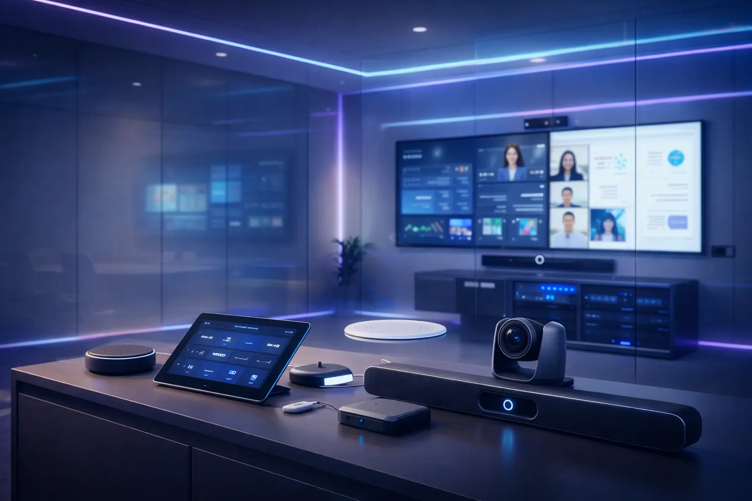 Integración AV y control centralizado para salas.